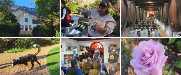 Ein weiteres Highlight unserer Reise war ein Konzertbesuch in den Old Nectar Gardens im Jonkershoek Valley von Stellenbosch. In der historischen Weinkellerei des Gartens durften wir eine intime Vorstellung von Mezzosopranistin Minette du Toit-Pearce und Pianist Pieter Grobler erleben. Ihr Programm *„If I…“* brachte uns die tiefsten Gedanken großer Dichter durch die Musik näher. Die Mischung aus Werken von Argento, Dring und Laitman schuf eine emotionale Reise in die Welt der Kunstlieder, die uns tief berührte. Bemerkenswert für alle Besucher ist die Vielfalt der Bäume in den Old Nectar Gärten; abgesehen von den Eichenbäumen wurde jeder Baum in diesen Gärten von Una van der Spuy über einen Zeitraum von mehr als 70 Jahren gepflanzt. Dazu gehören Küstenmammutbaum, Ulme, Blutbuche, Chorisia, Lombardei-Pappel, Amberbaum, Magnolie, Kapkastanie, Ahorn, Zierpfirsich, Zierpflaume, Kamelie und Kirschpflaume. Die 120 Meter lange Auffahrt zu Old Nectar verläuft unterhalb eines Hügels mit Eichenbäumen und bietet einen Blick auf einen Zierteich sowie auf Bäume und die Sandsteinfelsen der 1500 Meter hohen Jonkershoek-Berge.