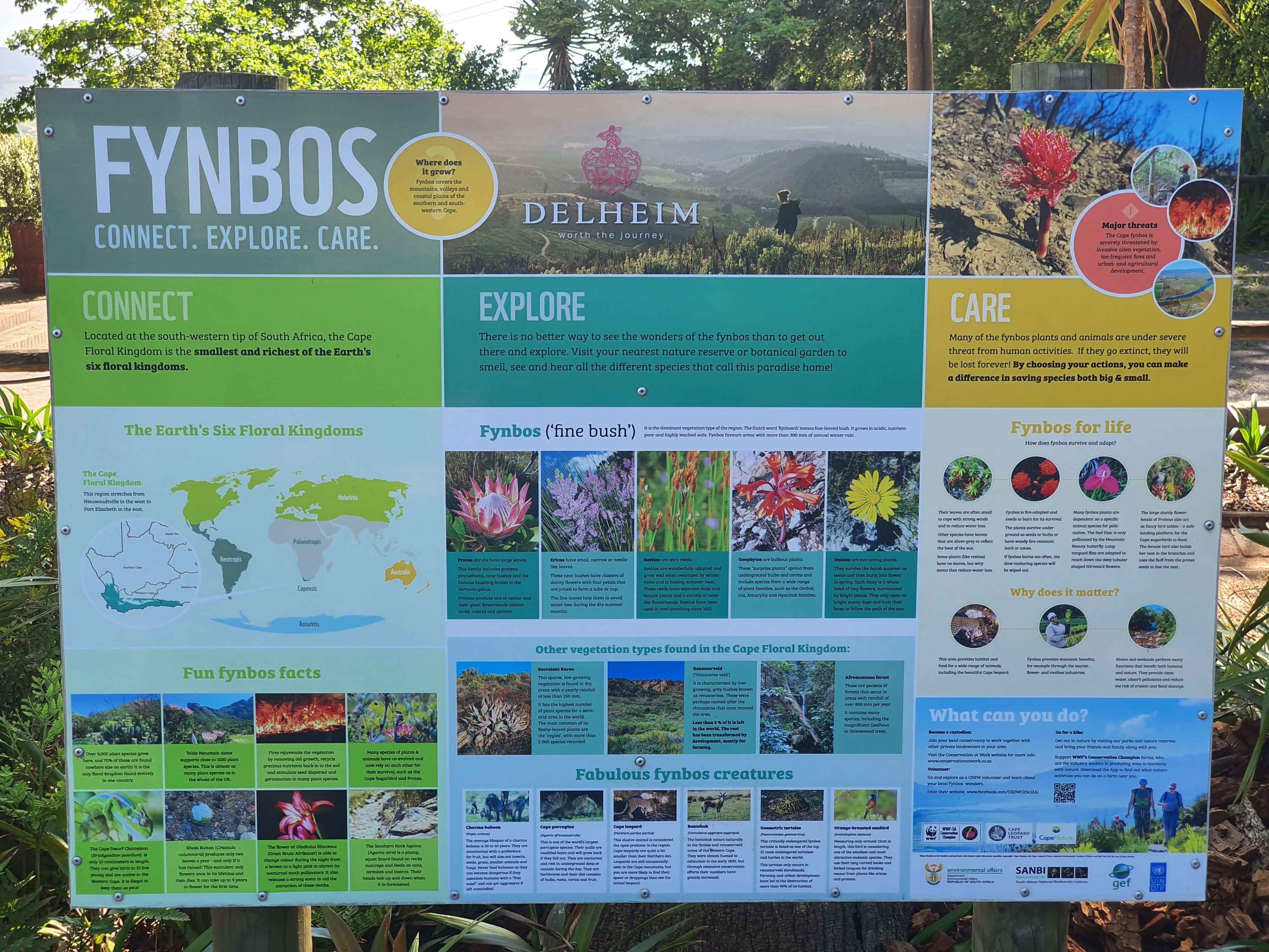 Dank nachhaltiger Methoden bleibt Delheim reich an Fauna und Flora. Über 50 Vogelarten, 120 Pflanzenarten sowie Stachelschweine, Duiker, Klippschliefer, Schlangen, Eidechsen und sogar der Kap-Leopard wurden registriert. Der Conservation Pioneer Award würdigt die Integration von Naturschutz in das Tourismusangebot. Besucher erleben die natürliche Umgebung bei Pilzsuche, Traktorfahrten durch die Weinberge oder der Besichtigung der Hänge. Die Delheim-Weine spiegeln dieses Engagement für Nachhaltigkeit und Biodiversität wider und machen Naturschutz für Besucher erlebbar.