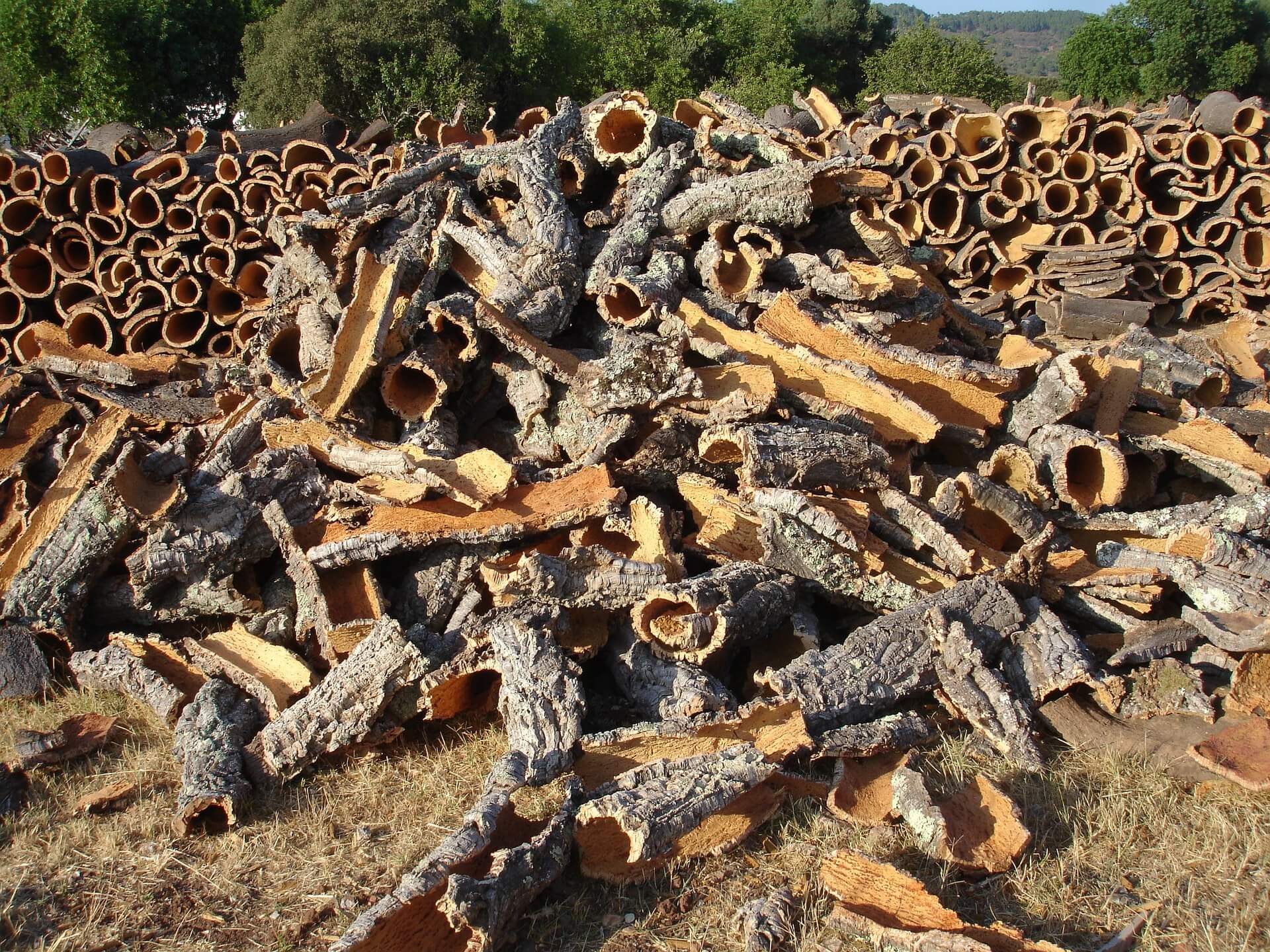 Die von den Korkeichen abgelösten Borken werden im Anschluss ein Jahr getrocknet, bevor sie weiterverarbeitet werden. Mit Hochtechnologie wird der Korkschwamm dann zuerst von der Borke befreit, begradigt und anschließend zu ganz verschiedenen Produkten weiterverarbeitet.